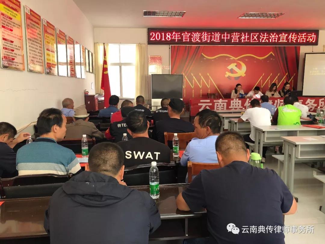 2018年5月7日至5月11日,为响应司法局社区普法的号召,云南典传律师事务所在主任王世云律师的统筹安排下,共指派35名律师分别前往季官社区、世纪城社区、艺术家园、官渡社区、中营社区、海东社区、云秀社区、龙马社区、宝丰社区,进行为期一周的法律宣讲活动。